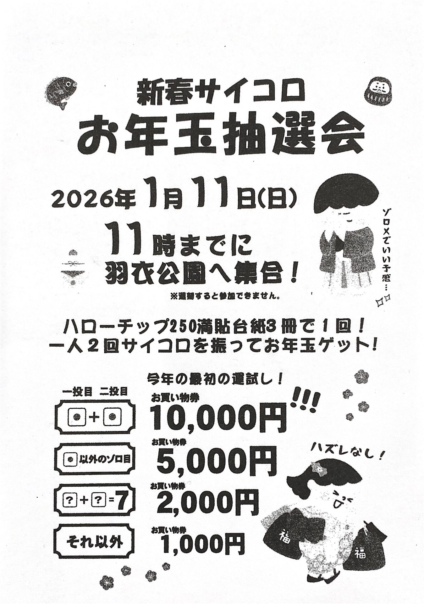 🎍はごろも商店街 年始の恒例イベント・お年玉抽選会のお知らせです!🎍
