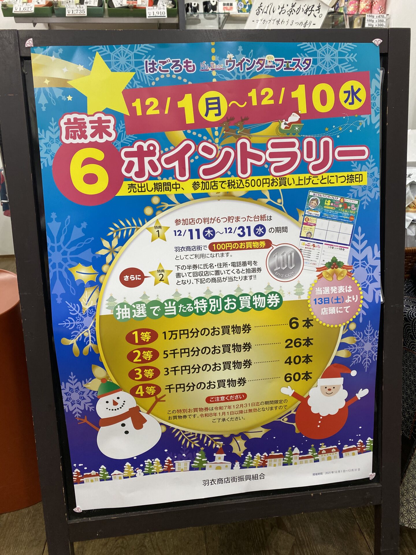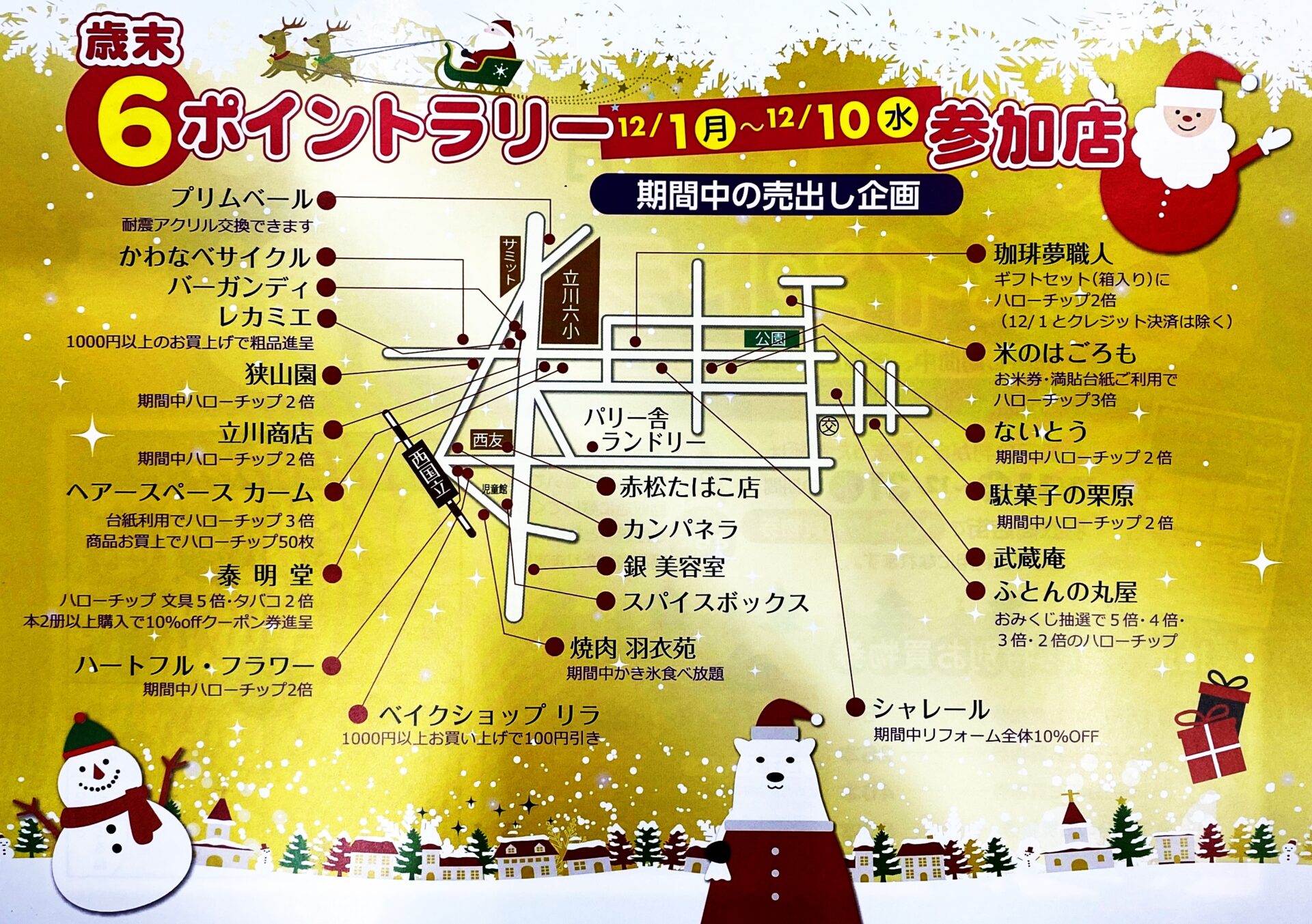 ① 12/1~10日の期間中、ラリー台紙の配布が始まり、参加店で税込500円お買い上げ毎に、スタンプが一つもらえます。 しかも!狭山園はこの期間ハローチップ2倍サービスです!