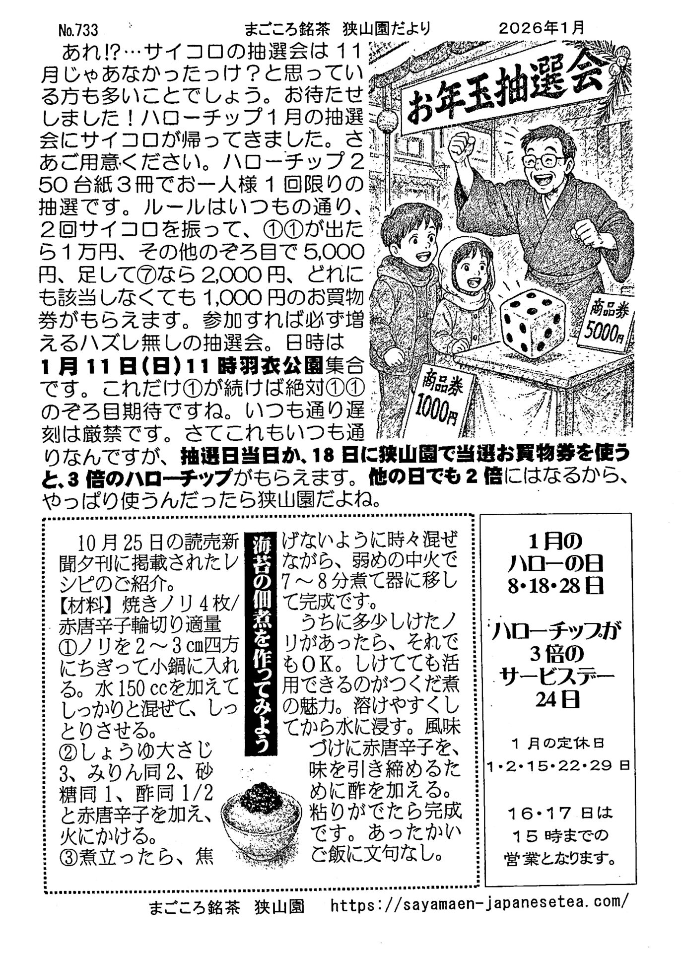 狭山園だより#いっぷく サイコロ抽選会の新年の運試し!